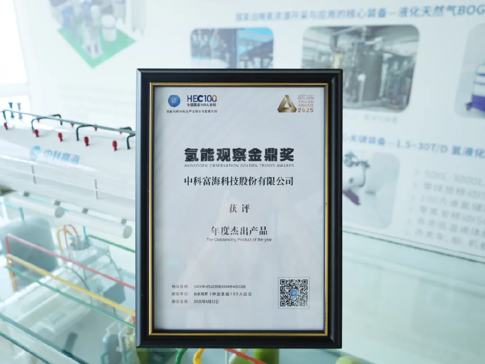 4月22日,CHEC2025第五屆世紀(jì)氫能與燃料電池大會在上海圓滿結(jié)束。會議以“聚焦氫未來,助力碳中和”為主題,旨在打通氫能產(chǎn)業(yè)各環(huán)節(jié),推動產(chǎn)業(yè)鏈發(fā)展。會議現(xiàn)場揭曉2025氫能觀察“金鼎獎”名單,中科富海憑借在氫能領(lǐng)域的產(chǎn)品創(chuàng)新研發(fā)和產(chǎn)品應(yīng)用示范等方面的實踐成果,榮獲“金鼎獎·年度杰出產(chǎn)品”獎。氫能產(chǎn)業(yè)“金鼎獎”是...